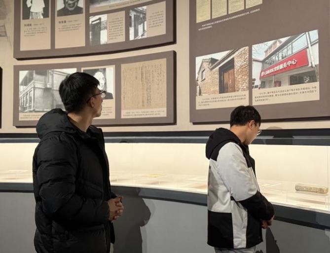 步入展厅,庄严肃穆的氛围让大家瞬间沉静。在“奋起救亡”板块,成员们了解到天津人民在民族危亡之际的觉醒与抗争;“津门浩劫”部分的史料,揭示了日军侵略给天津带来的深重灾难;在“市区抗战”和“盘山烽火”板块,通过场景复原和文物展示,呈现了天津军民在城市、山区开展游击战争的壮烈场景;“赢得胜利”板块的历史记录,让大家感受到抗战胜利时的振奋与荣光;“抗战英烈”板块中,吉鸿昌将军就义前的遗嘱、节振国缴获的日军军毯、八路军战士的笔记本等文物,让成员们直观触摸到英烈们的赤子之心。