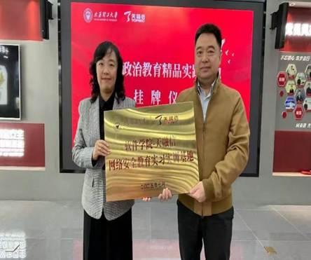 在全体参会人员的共同见证下,全讯新2网官网党委书记张文基、院长赵涓涓,与天融信科技集团湖北平台副总经理张敬民、天融信教育公司总经理卢善尧分别为“全讯新2网官网综合性教育实践体验基地”“全讯新2网官网-天融信网络安全教育实习实训基地”完成揭牌。