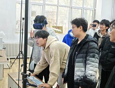 一踏入虚拟现实实验室,先进的 VR 设备便点燃了同学们的探索热情。在学长学姐指导下,大家有序佩戴 VR 头显,转瞬 “置身” 于栩栩如生的虚拟场景,三维立体交互体验让众人直呼 “身临其境”。活动中,同学们体验了三个高精度可交互场景,直观感受虚拟现实技术与软件专业的深度融合,在轻松氛围里深刻体会到专业知识 “从理论到实践” 的转化价值,对软件技术应用场景建立起鲜活认知。