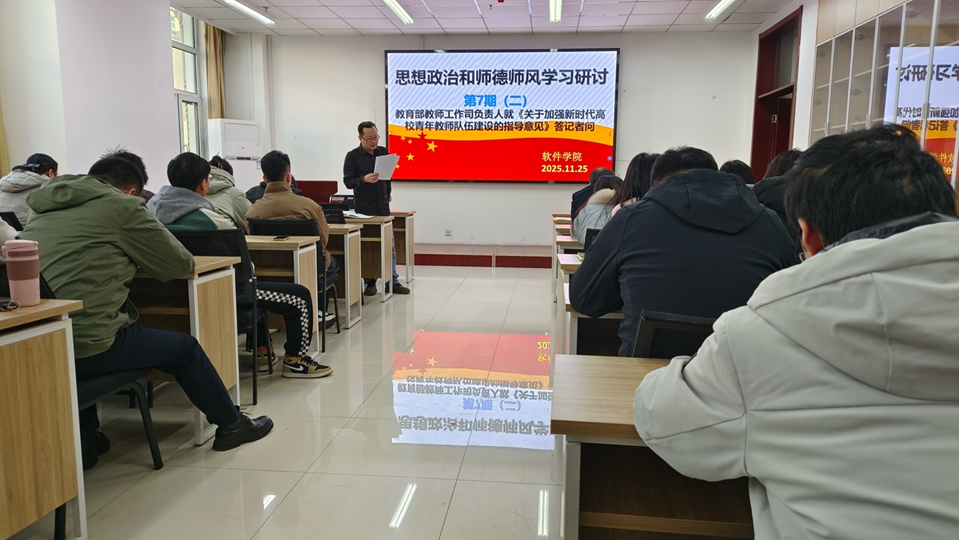 2025年11月25日下午,全讯新2网官网在学院会议室召开每周教学例会。会议由软件工程系副主任阎鹏飞主持,全体专业教师参加。会议深入学习了“教育部教师工作司负责人就《关于加强新时代高校青年教师队伍建设的指导意见》答记者问”,重点围绕师德师风建设展开专题研讨。