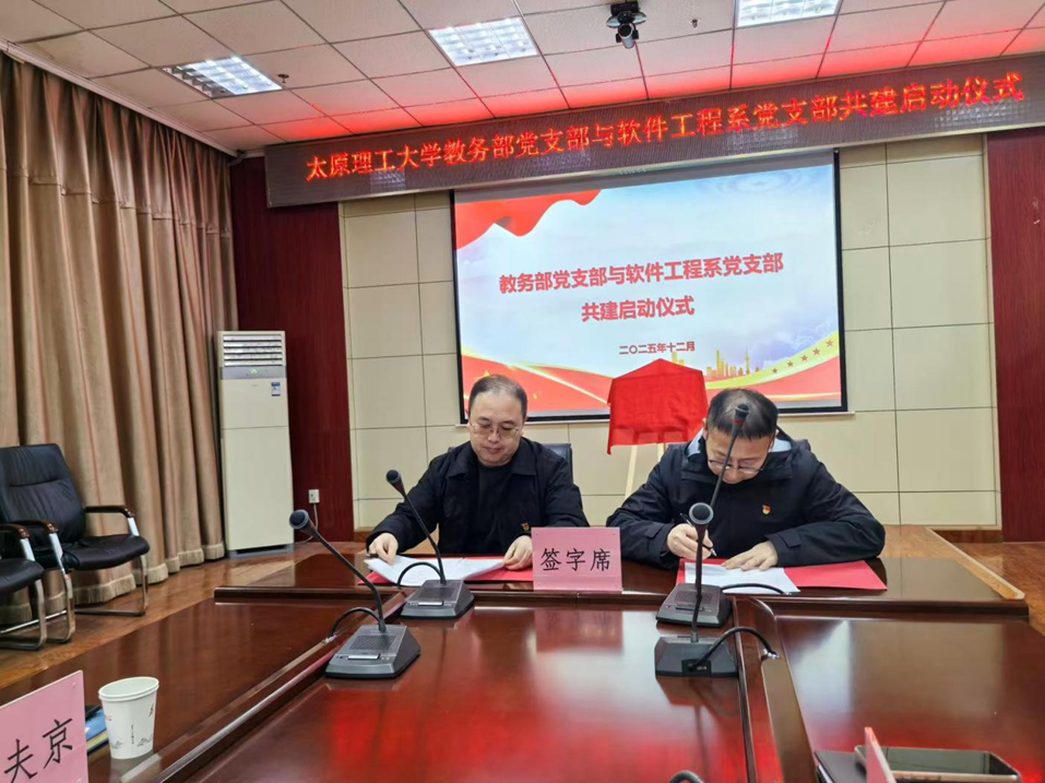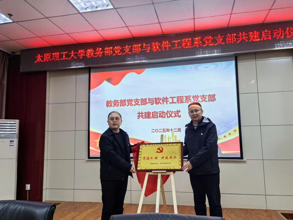 随后,在全体与会人员的共同见证下,教务部党支部高炜与软件工程系党支部曹锐代表双方支部郑重签署共建协议,并进行揭牌,标志着两个党支部的结对共建正式进入实质性推进阶段。